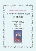 出演者も聴衆も宮下ギター教室の生徒に限定した内輪のコンサートです(このため、特に記載がなければ非公開となっております)。生徒さんに人前で演奏する度胸をつけてもらう目的で始めました。今後、どのように発展していくか楽しみです。演奏後には宮下祥子が出演者全員にワンポイント・アドバイスをします。 |